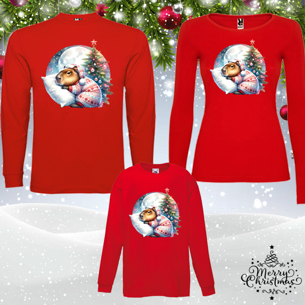 Забавен коледен комплект - мъжка блуза, дамска блуза и детска блуза.