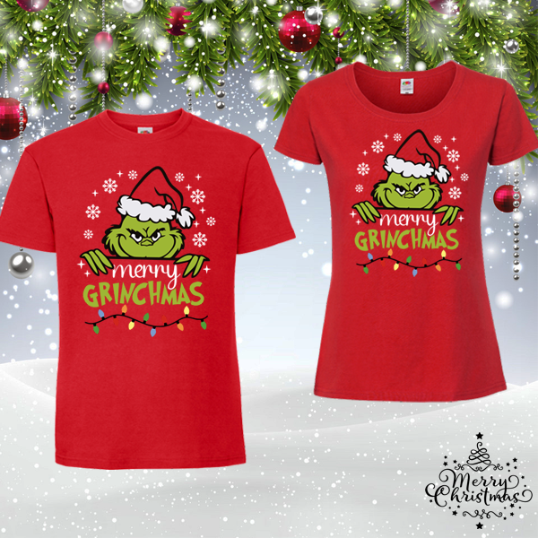 Забавен коледен комплект - мъжка тениска и дамска тениска.