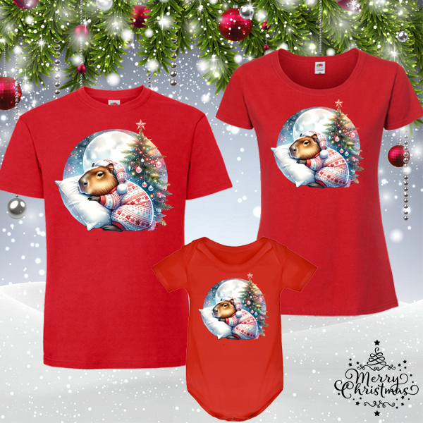 Забавен коледен комплект - мъжка тениска, дамска тениска и бебешко боди.
