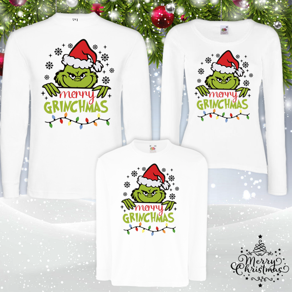 Забавен коледен комплект - мъжка блуза, дамска блуза и детска блуза.