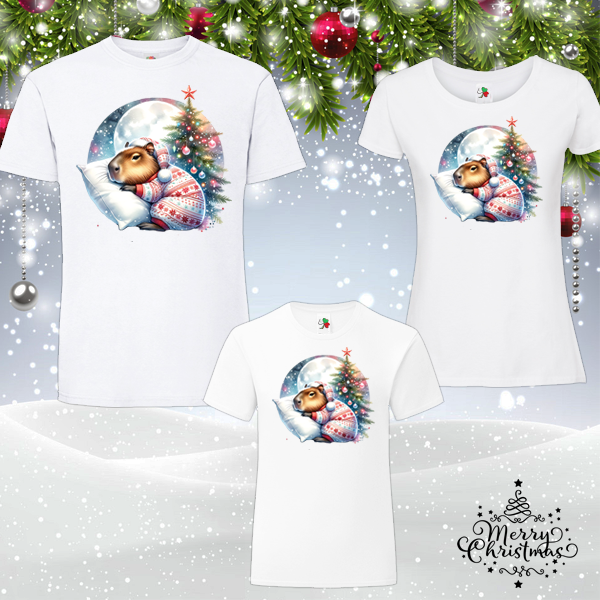 Забавен коледен комплект - мъжка  тениска, дамска тениска и детска тениска.