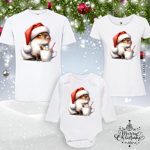 Забавен коледен комплект - мъжка тениска, дамска тениска и бебешко боди.
