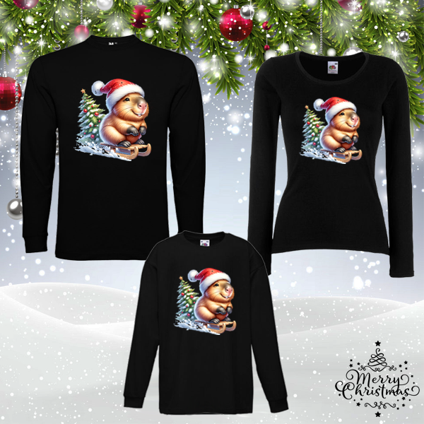 Забавен коледен комплект - мъжка блуза, дамска блуза и детска блуза.