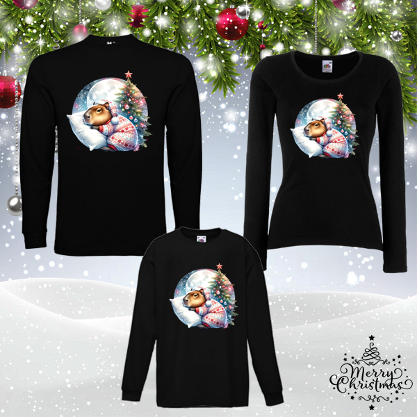 Забавен коледен комплект - мъжка блуза, дамска блуза и детска блуза.