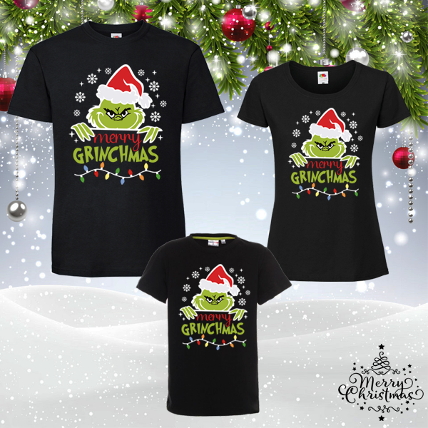 Забавен коледен комплект - мъжка  тениска, дамска тениска и детска тениска.