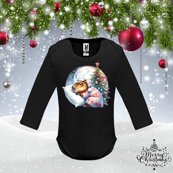 Черно коледно бебешко боди - Капибара