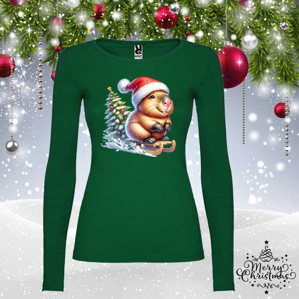 Дамска зелена коледна блуза- Капибара
