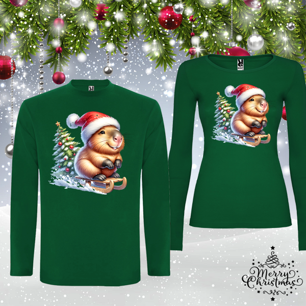 Комплект зелени коледни блузи- Капибара