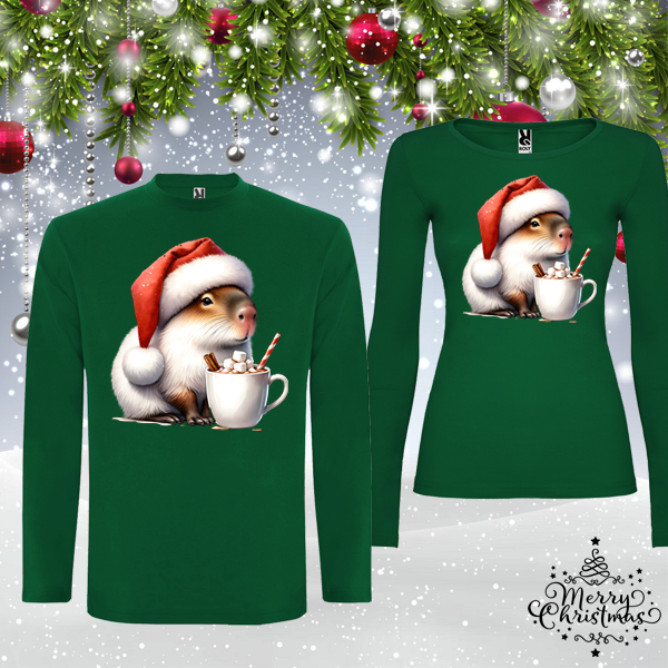 Комплект зелени коледни блузи- Капибара