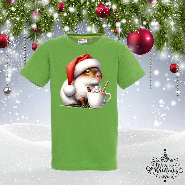 Детска коледна зелена тениска- Капибара