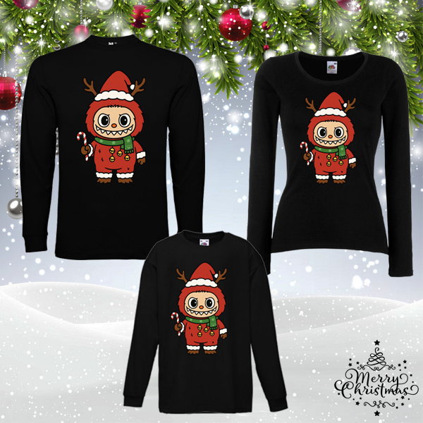 Забавен коледен комплект - мъжка блуза, дамска блуза и детска блуза.