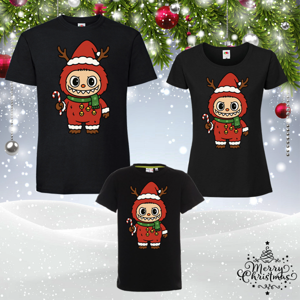 Забавен коледен комплект - мъжка тениска, дамска тениска и детска тениска.