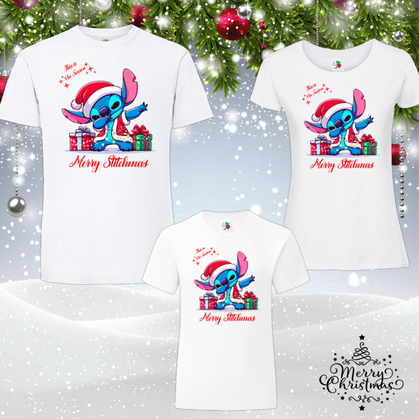 Забавен коледен комплект - мъжка  тениска, дамска тениска и детска тениска.