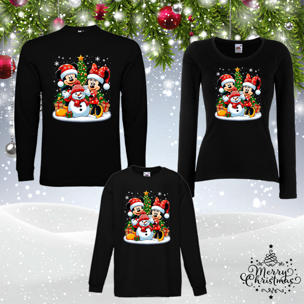 Забавен коледен комплект - мъжка блуза, дамска блуза и детска блуза.