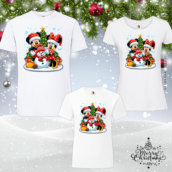Забавен коледен комплект - мъжка тениска, дамска тениска и детска тениска.