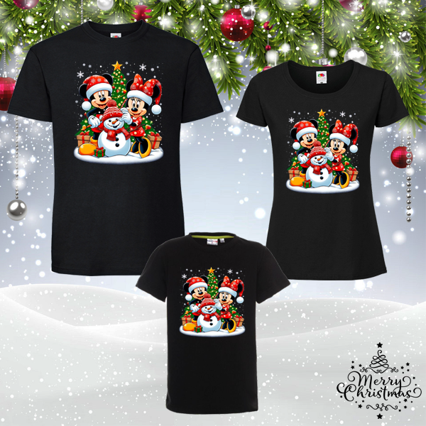 Забавен коледен комплект - мъжка тениска, дамска тениска и детска тениска.