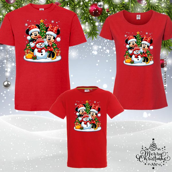 Забавен коледен комплект - мъжка тениска, дамска тениска и детска тениска.