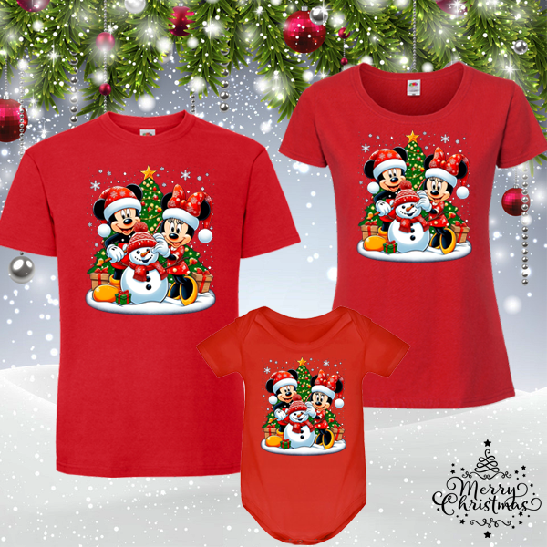 Забавен коледен комплект - мъжка тениска, дамска тениска и бебешко боди.
