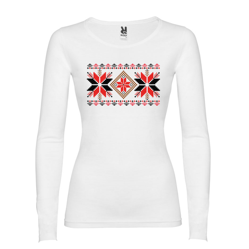 Бяла блуза с народни мотиви. Материя: трико  100% памук.