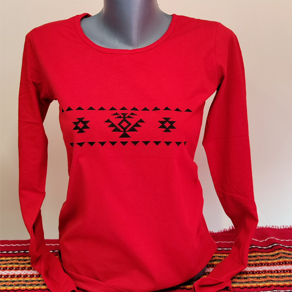 Дамска червена блуза с бродерия