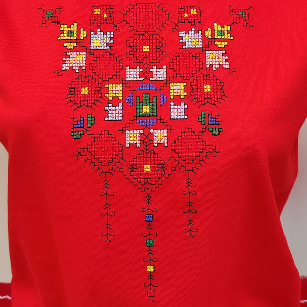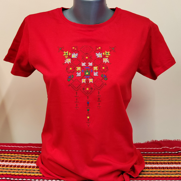 - Купете Дамска червена тениска с бродерия или друг продукт от нашата промоционална секция за да получите 10% отстъпка.