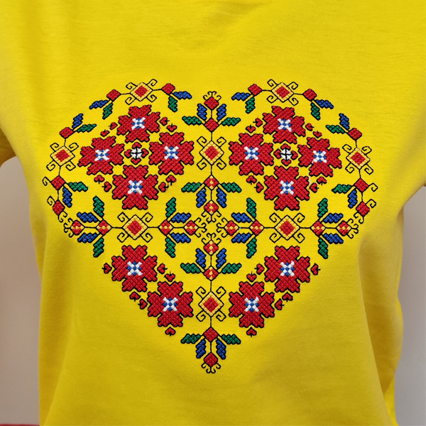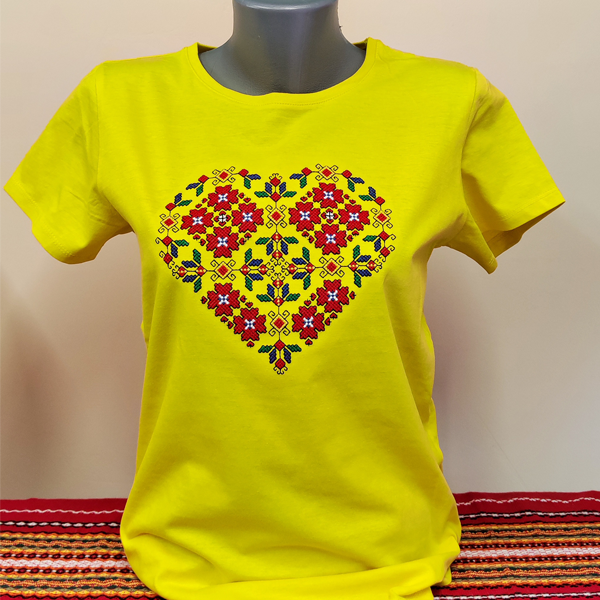 Дамска жълта тениска с бродерия - Сърце