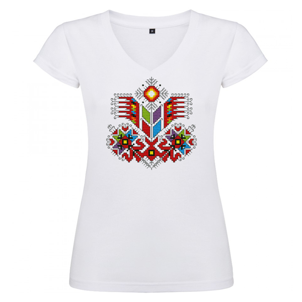 Дамска бяла тениска - V образно деколте - Дървото на живвота